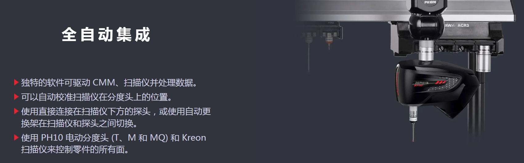 - 3D掃描儀用于三坐標(biāo) 將您的三坐標(biāo)優(yōu)化為掃描設(shè)備 3D掃描儀是CNC 和 CMM的優(yōu)勢(shì)補(bǔ)充,它可滿足生產(chǎn)和投資的回報(bào)要求,同時(shí)贏得檢測(cè)時(shí)間。 Kreon 3D掃描儀可最大程度發(fā)揮CNC 和CMM機(jī)器的潛力。